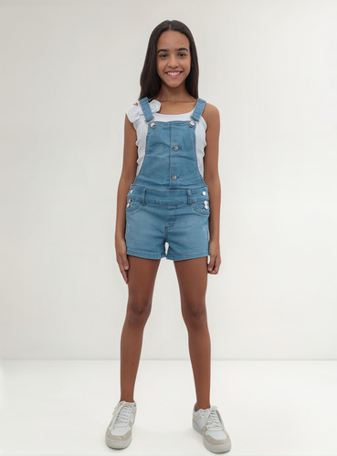 A Jardineira Feminina Juvenil é a escolha perfeita para quem busca estilo e conforto em um só produto. Confeccionada em uma mistura de algodão, poliéster e elastano, ela proporciona uma sensação agradável ao toque e liberdade de movimento, ideal para o dia a dia.